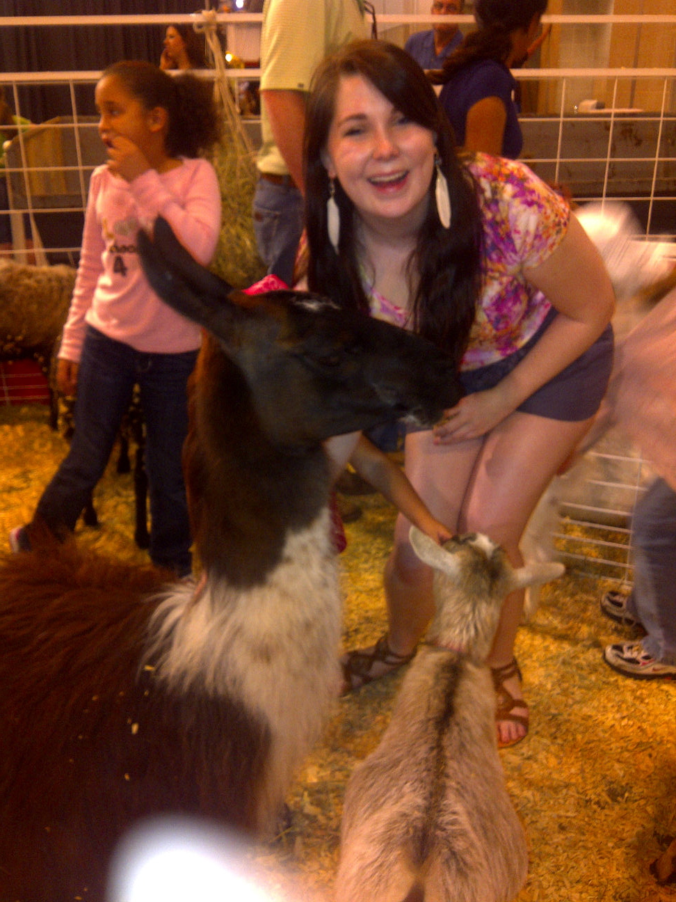 Over spring break I went back home to Texas.  One of my favorite things every year about spring break is the Houston Livestock Show and Rodeo, which goes from the end of February to the middle of march.  Usually I go with my dad and sister, but this year I went with my mom and my step-dad’s family because they had never been before.  It was so much fun! They have a huge carnival and the whole Astrodome is filled with animals.  I like the actual rodeo part the best because it’s really exciting to see all of the different events, like bull riding and team roping.  It’s super intense in Texas.  The funniest part about the whole rodeo this year though was the petting zoo.  There was this llama in there that was just sitting there like a statue while baby goats and were climbing all over it and little kids were poking it.  It just wouldn’t move and I thought it was hilarious, so I took a picture with it.  Overall, my spring break was just a much needed break from school.  Not really that exciting minus the rodeo.